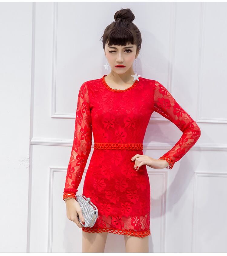 クルーネック レース タイト ミニ丈ワンピース