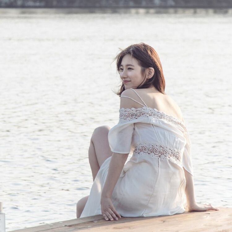 上品なホワイトの花レースワンピース。