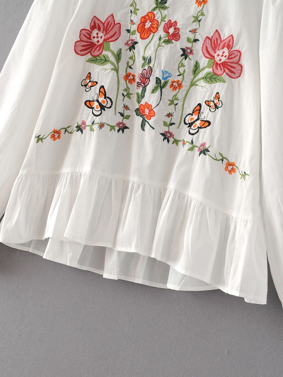 裾のフリルがと花刺繍がお洒落なカットソー。