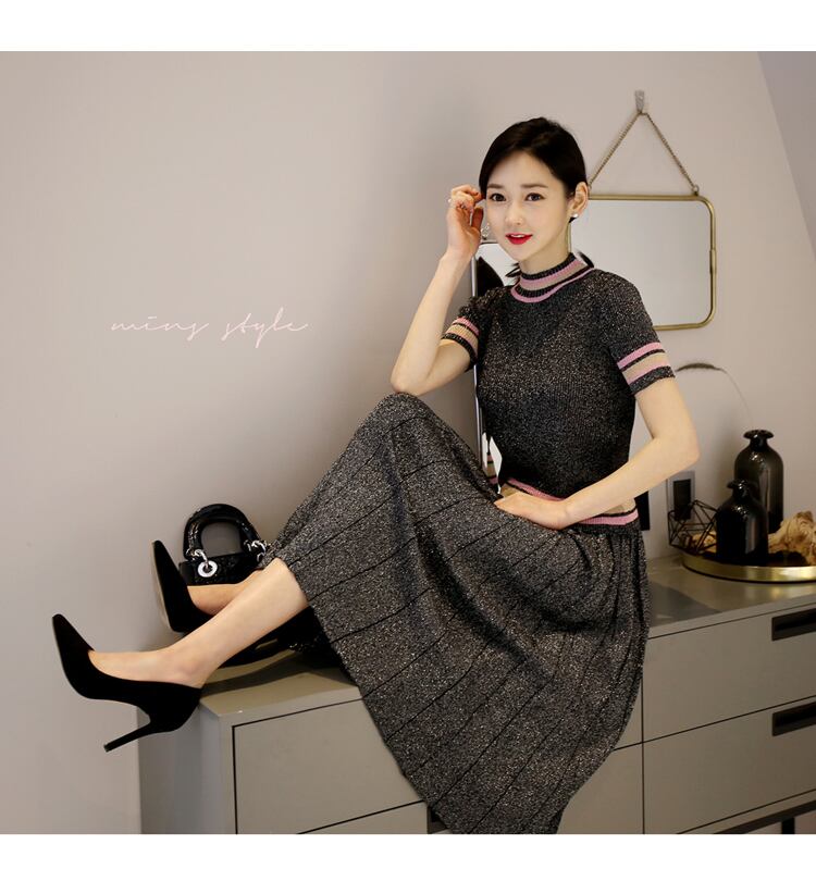 半袖 タートル ニットトップス プリーツスカート セットアップ