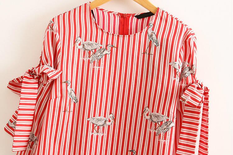 袖のリボンと鳥模様が可愛らしいブラウス。