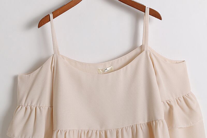 胸元、肩周りが大きく開いた開放的なデザイン。