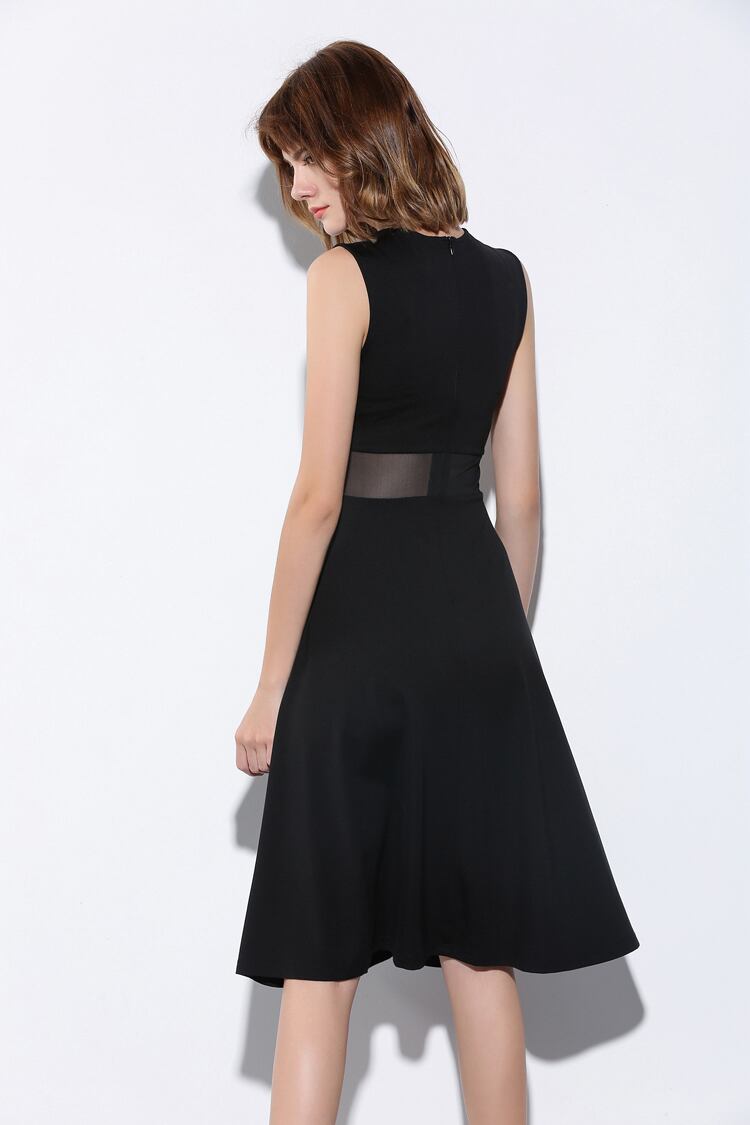 ノースリーブ クルーネック 無地 ウエストベルト ワンピース