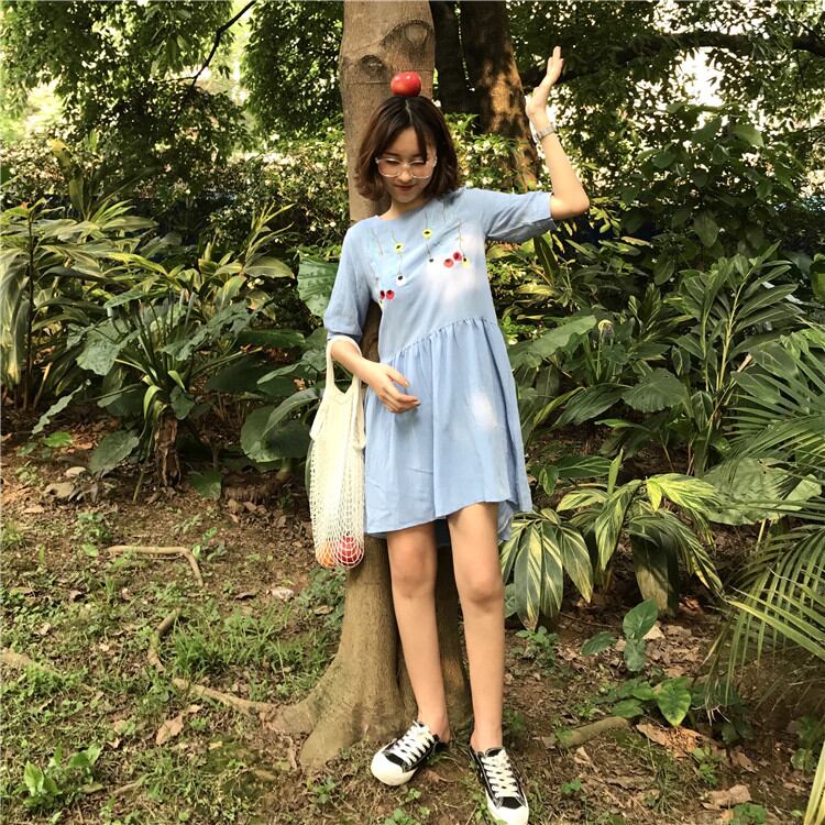 ガーリーな花刺繍のナチュラル系タックワンピです♡