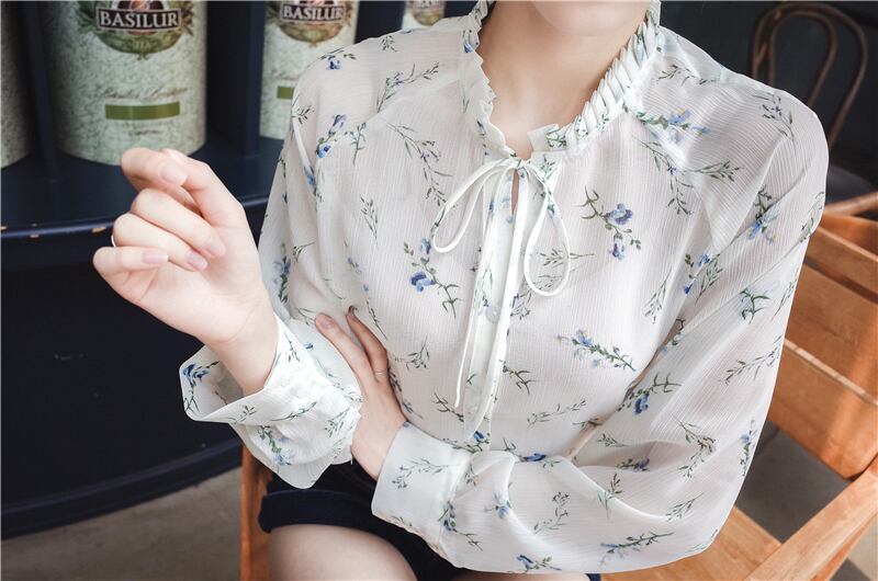 フリルの短いスタンドカラーがとってもお洒落なブラウス。