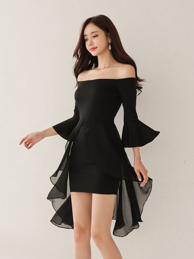 デコルテを美しく見せてくれるオフショルダーは、女性を可憐に演出する魔法のデザイン。