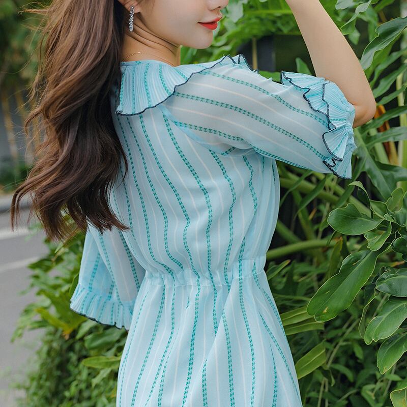 爽やかなブルーグリーンと透け感が夏にピッタリのワンピース。