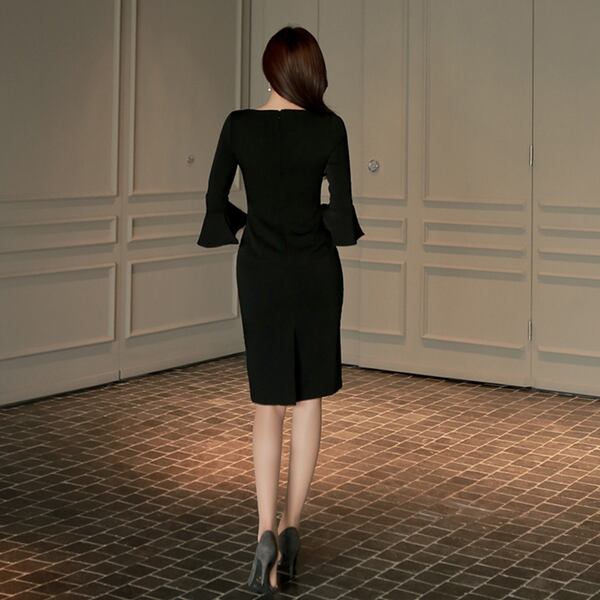 胸元も開き過ぎず露出が少ないドレスは、きちんとした席でも使え着回し抜群のアイテムです。