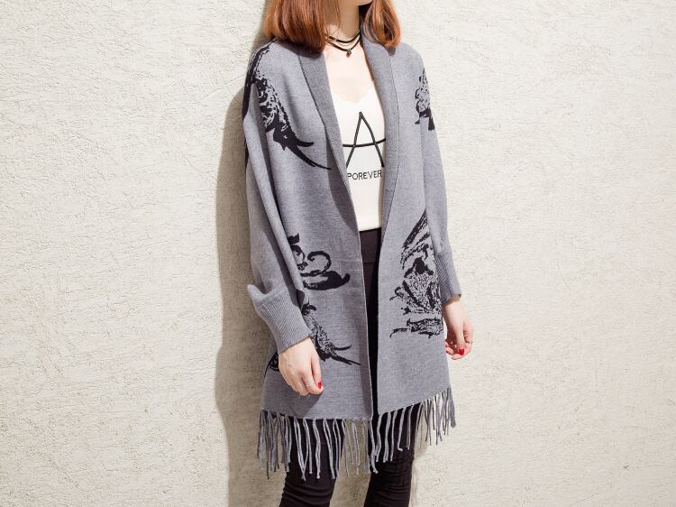 一見ポンチョを羽織っているように見える、オシャレデザインのカーディガン。