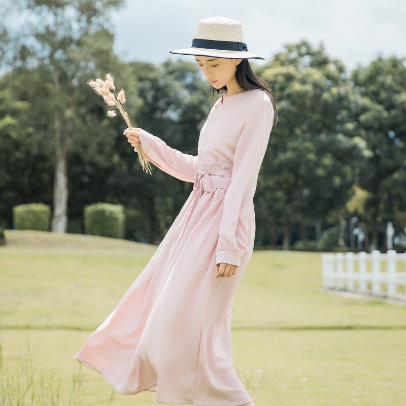 歩くたびに風に揺れるフレアが美しいロング丈のワンピースです。