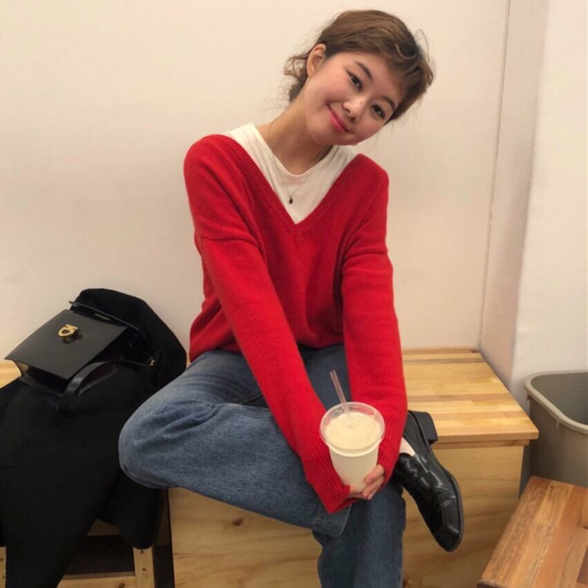 Vネックのセーターとしても大活躍できそうなシンプルデザイン。