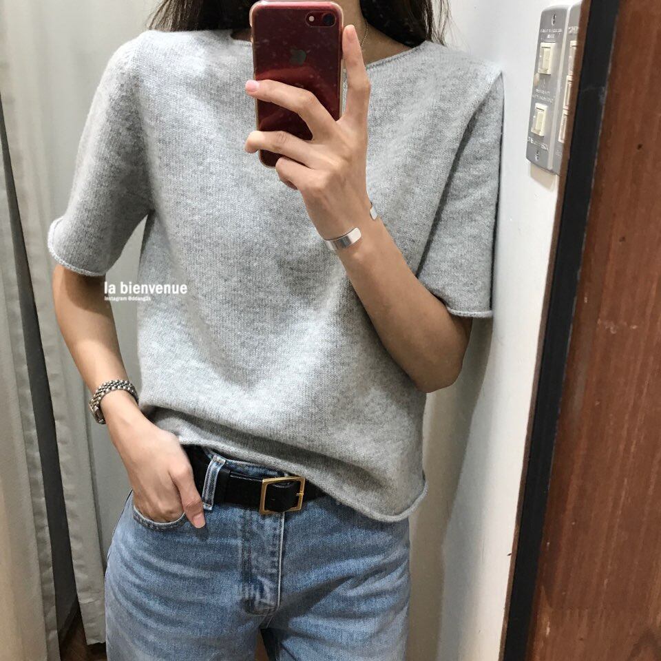シンプルで様々なコーディネートに取り入れやすいハーフスリーブニット。