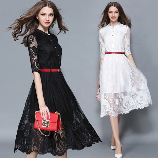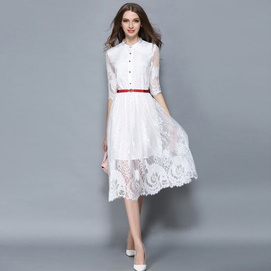 袖と裾の透け感が、おしゃれなスカラップ仕様のワンピースです。