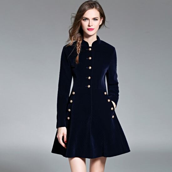 肌触りの良い生地と金ボタンが特徴的なワンピースです。