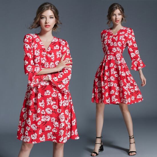 ふんわり広がるフレアースカートが体のラインをきれいに見せてくれます。