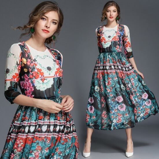 ふんわりと広がる長めのスカートが体型をカバーしつつ女性らしく仕上げます。