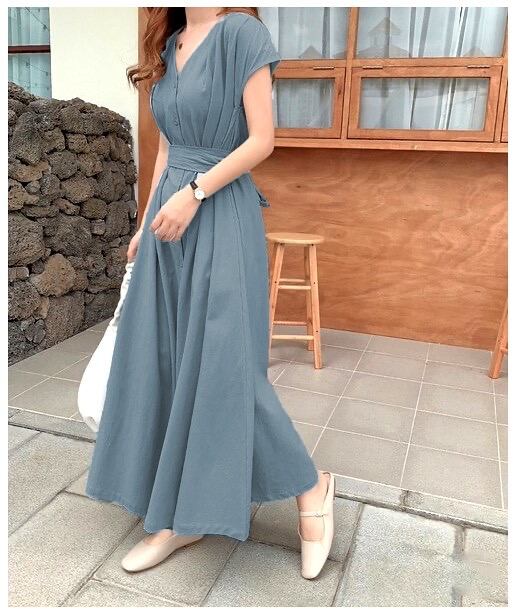 2021新作 トレンド フレンチスリーブ ワンピース シンプル 綺麗 体系カバー レディース