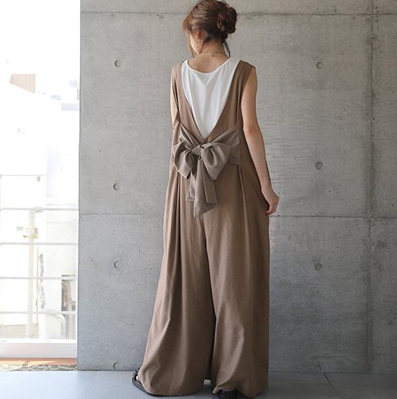 2022新作 レディース オールインワン サロペット 無地 キャミソール キャミワンピース バックリボン