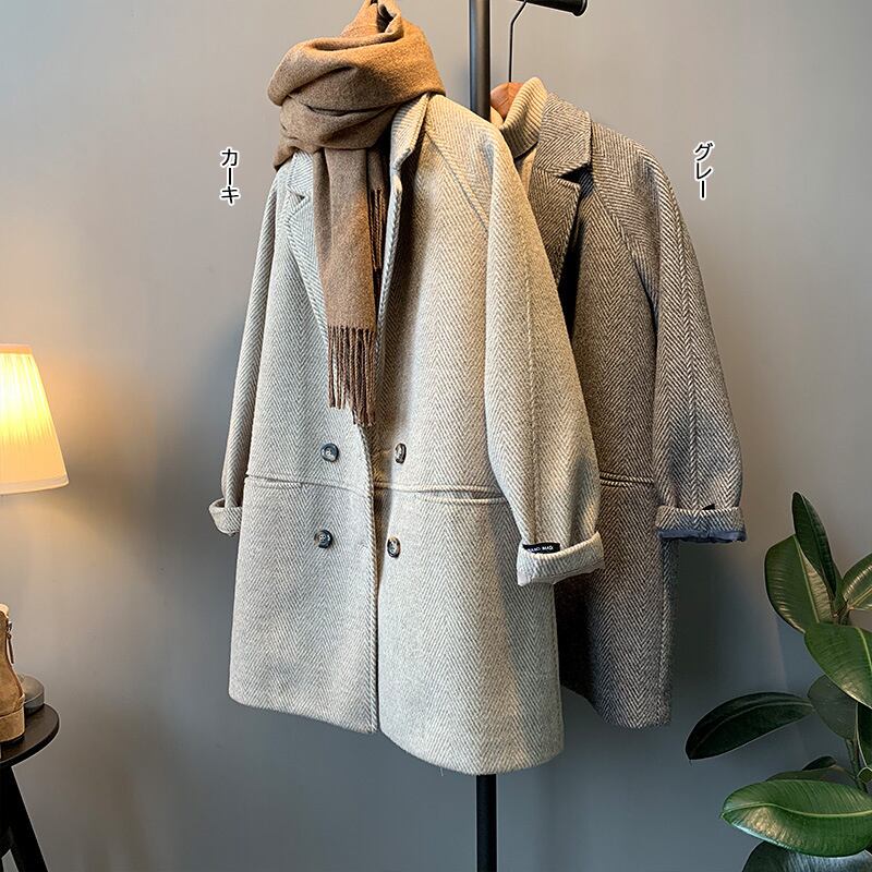 ・大きめ襟で小顔効果のある上品なチェスターコート。
