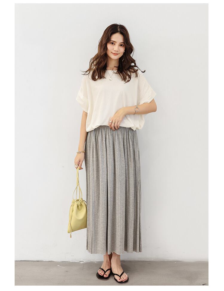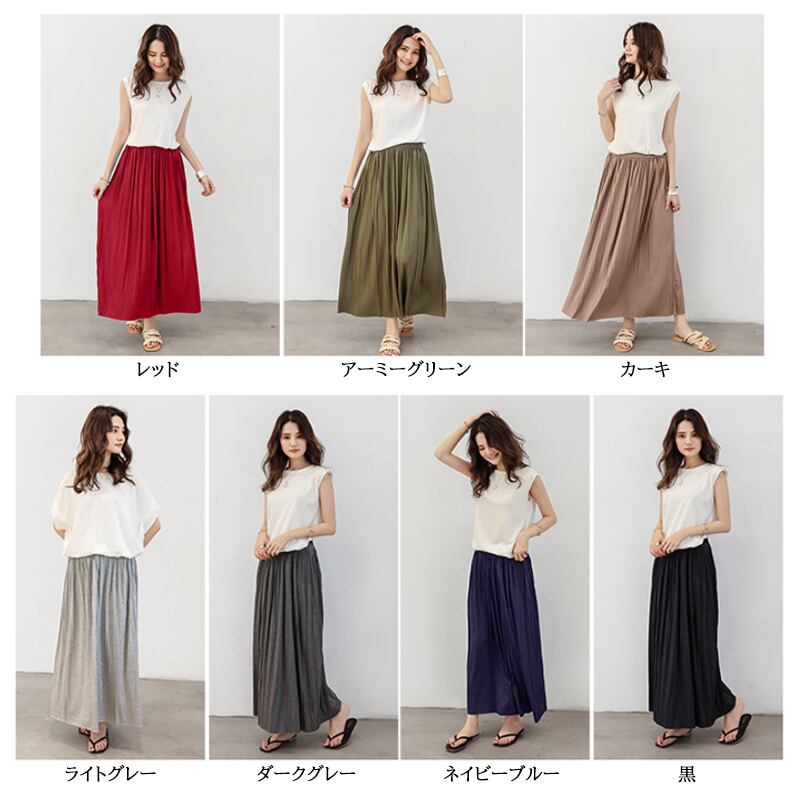 2021秋冬新作 ロング Aライン スカート プリーツ ベーシック ウエストゴム 着回し シンプル 体系カバー