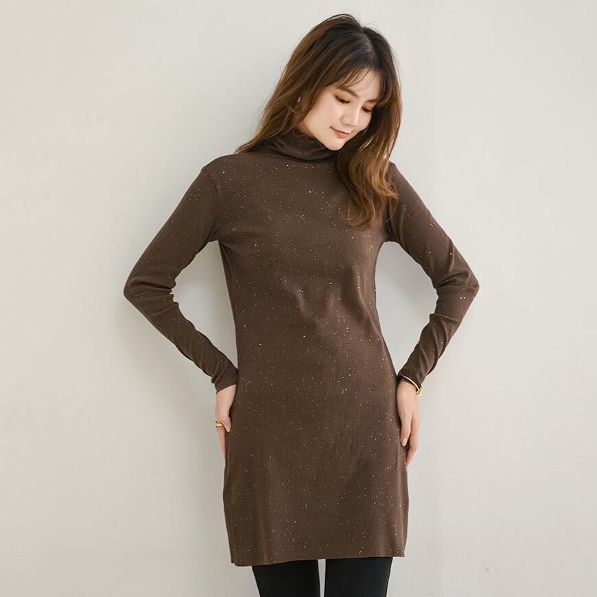 ラメ生地ハイネックワンピース