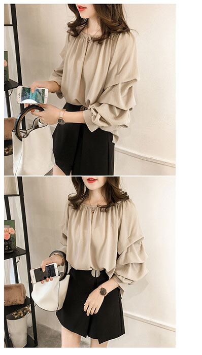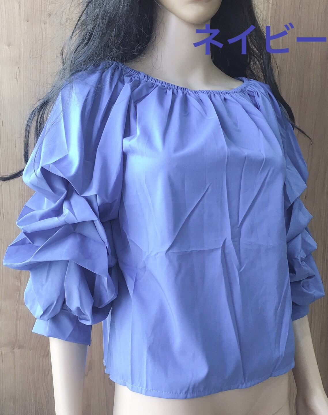 【即納】素材違いでも十分可愛くコスパ◎ボリューム袖ブラウストップス七分袖ゆったり在庫限り 3色/