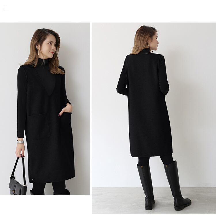 2021新作秋冬 レディース 無地 ベーシック Vネックワンピース ノースリーブ 選べる着丈 オールシーズン