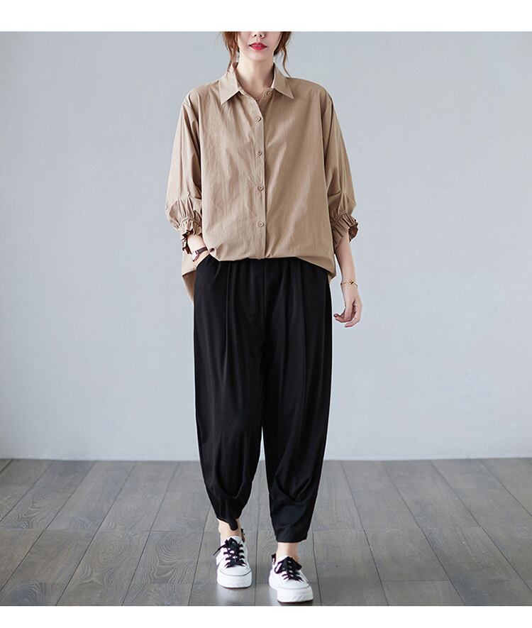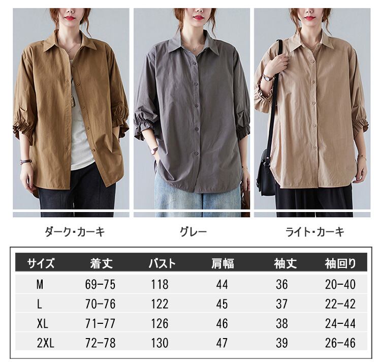 2022新作 レディース シャツ 羽織 7分丈 ブラウス トップス ギャザー シンプル