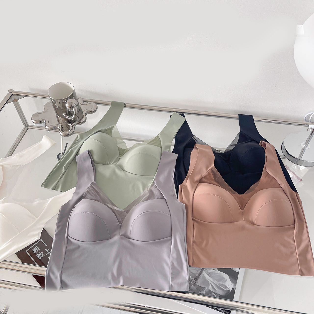2022新作 キャミソール ノンワイヤー 透け感 無地 インナー 伸縮性 ランジェリー ブラトップ 胸パッド入り