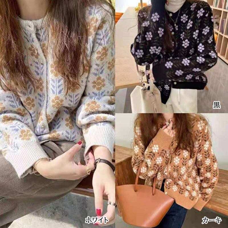 2021秋新作 レディース カーディガン ショート丈 羽織 ボレロ 長袖 花柄 レトロ ニット セーター