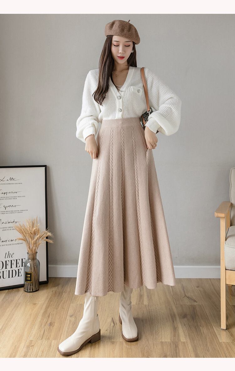 秋冬新作 トレンド 無地 ニット ニットスカート プリーツスカートロング丈 カジュアル 着回し