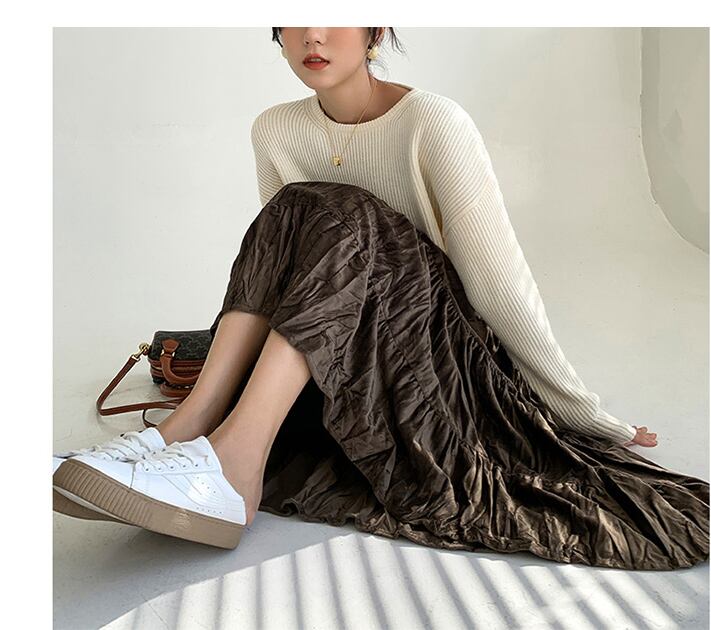 春夏新作 トレンド ロング ティアードスカート ベロア調 カジュアル 着回し