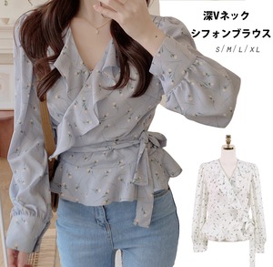 深Vネックシフォンブラウス