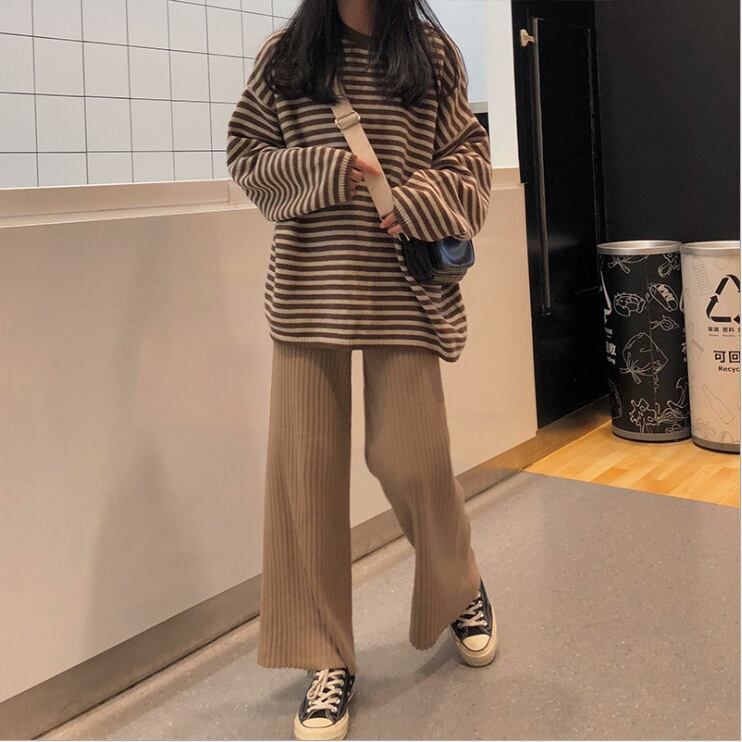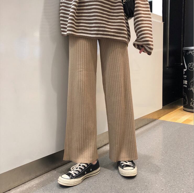 秋冬新作 レディース ニットパンツ ワイドパンツ ラフ ルームウェア ワンマイル 日常
