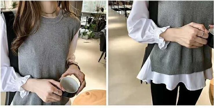 秋新作 大人可愛い トレンド ブラウス セット ニットベストトップス 日常 通勤通学