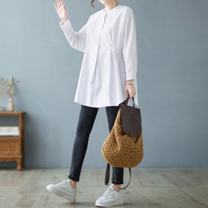 2022新作 レディース シャツ トップス 体型カバー ふんわり 長袖 おしゃれ かわいい ミドル丈 こなれ感
