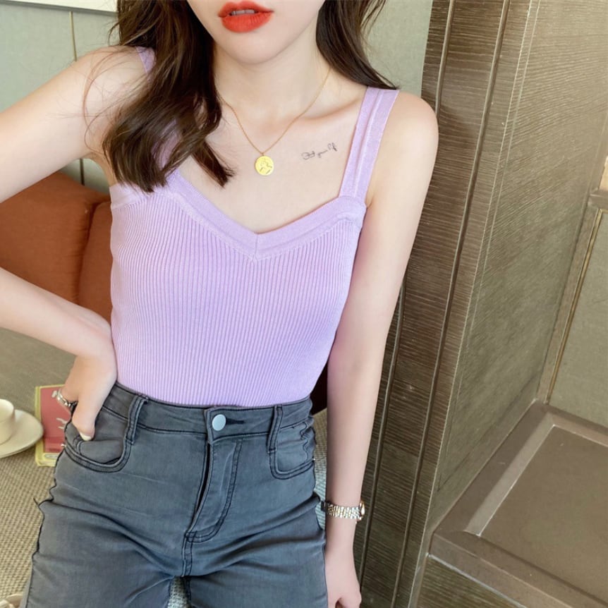 2022新作 ベーシック キャミソール シンプル 無地 インナー トップス 伸縮性 ニットキャミ
