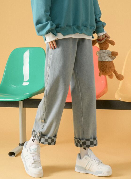 2022新作 レディース パンツ ズボン デニム シーンズ カジュアル 市松模様 ロールアップ