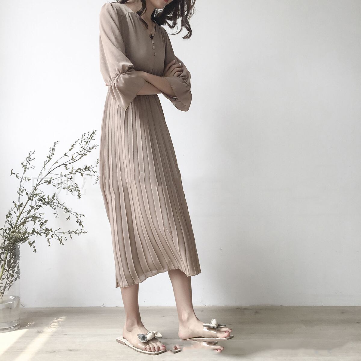 歩くたびにふんわり 上品プリーツワンピース