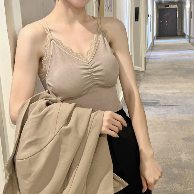 2022新作 ベーシック キャミソール ノンワイヤー シンプル 無地 インナー 伸縮性 ランジェリー レース