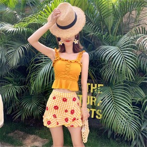 カジュアルすぎず こなれて見える!水着 フラットアングル スプリット 2点セット 保守的 スリム 学生