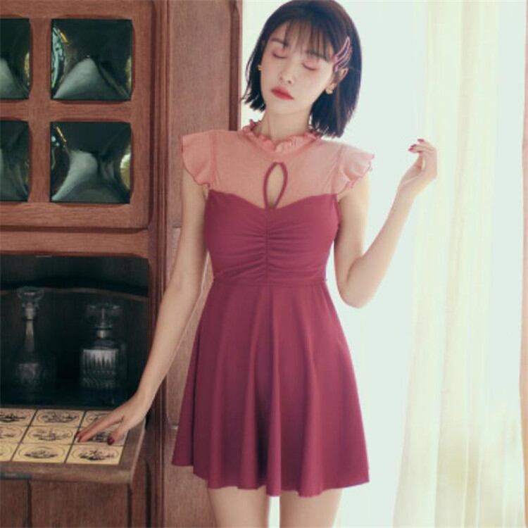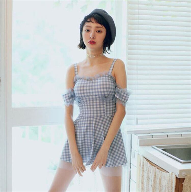 格子縞 蝶結び 水着 カバー腹 スリム 保守的 スプリット 3点セット 小さな胸元