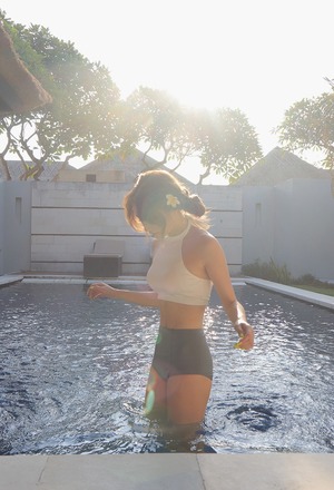 セクシー ビキニ スプリット 2点セット バンディング 水着 チェストギャザー オープンウエスト