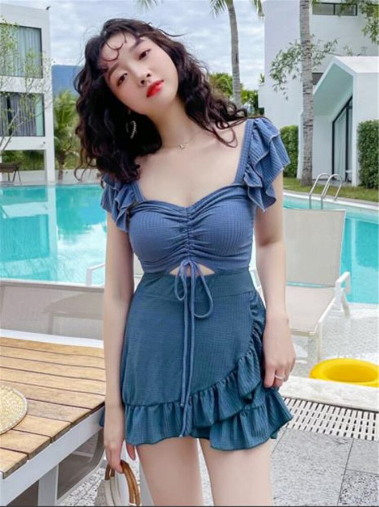 可愛い 韓国 水着 コンビネゾン フラットアングル 保守的 スリム 学生 温泉 袖付き