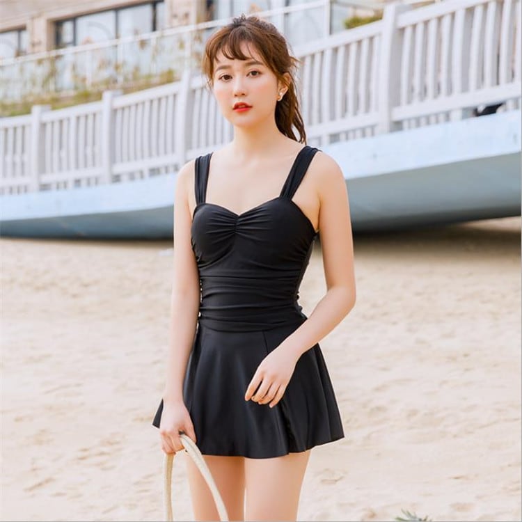 韓国語版 温泉 水着 無地 コンビネゾンスカート フラットアングル 保守的 スリム