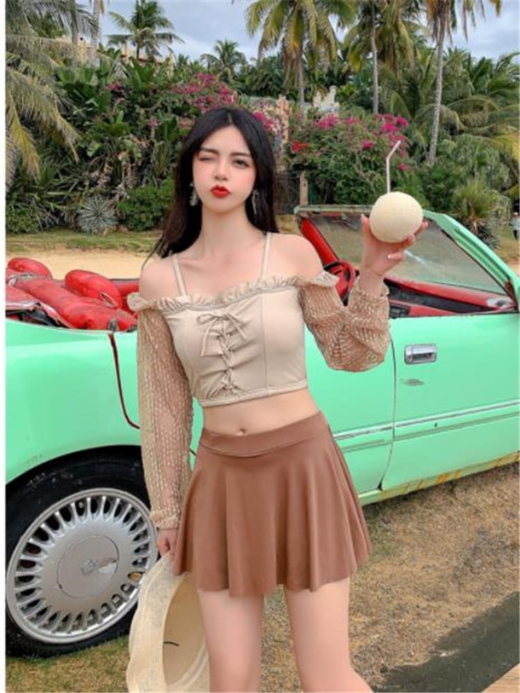 水着 温泉 スプリット ビキニ 小さい新鮮な 長袖 コンサバティブ 韓国 女子学生