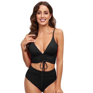 深いVネック バンディング 巾着 ハイウエスト セクシー ビキニ スプリット 水着