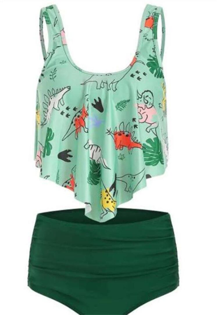 新作登場 ハイウエスト ストライプ ハワイ ロータスリーフ リーフ プリント 水着