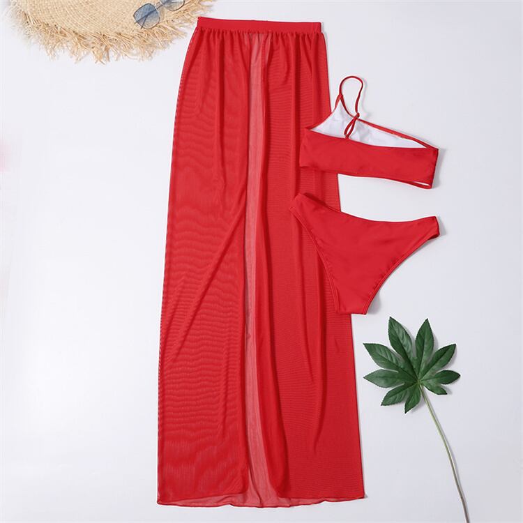 ピュアカラー スプリット 3点セット レーヨン セクシー 新品 水着 ビキニ