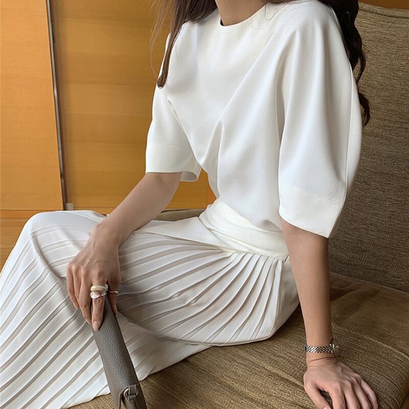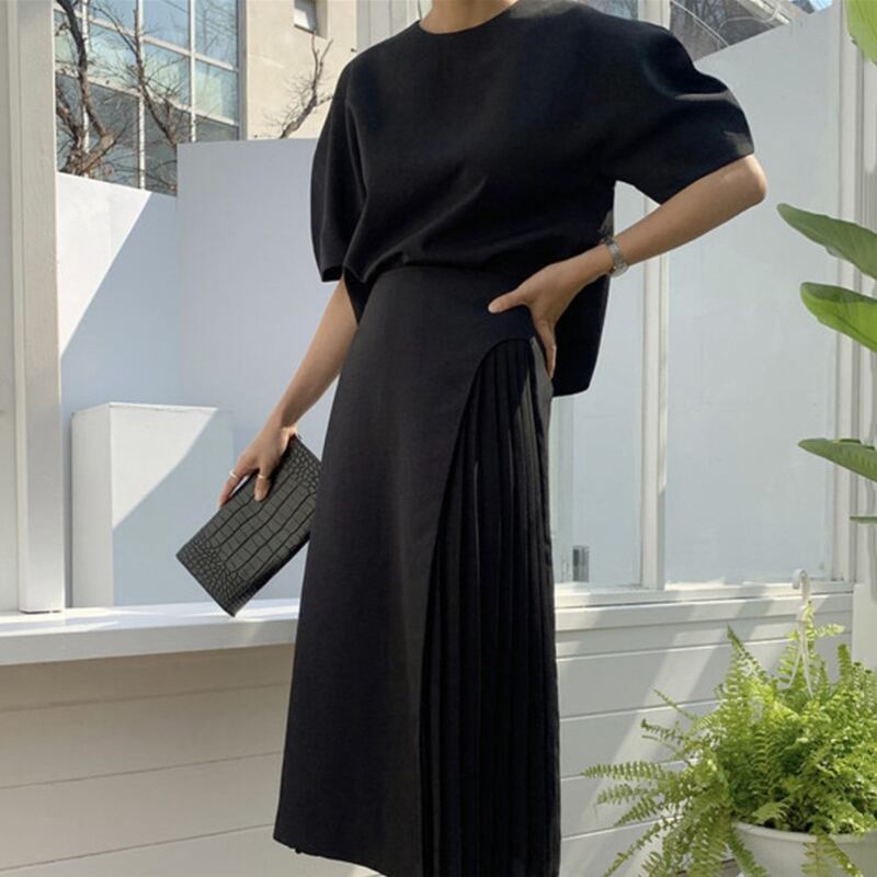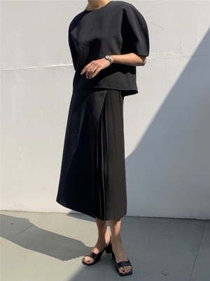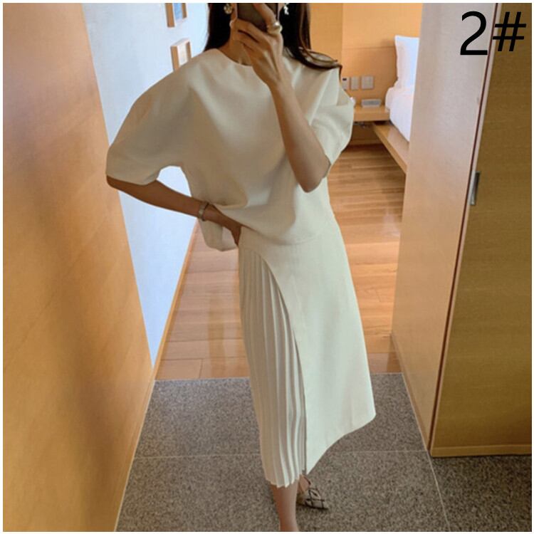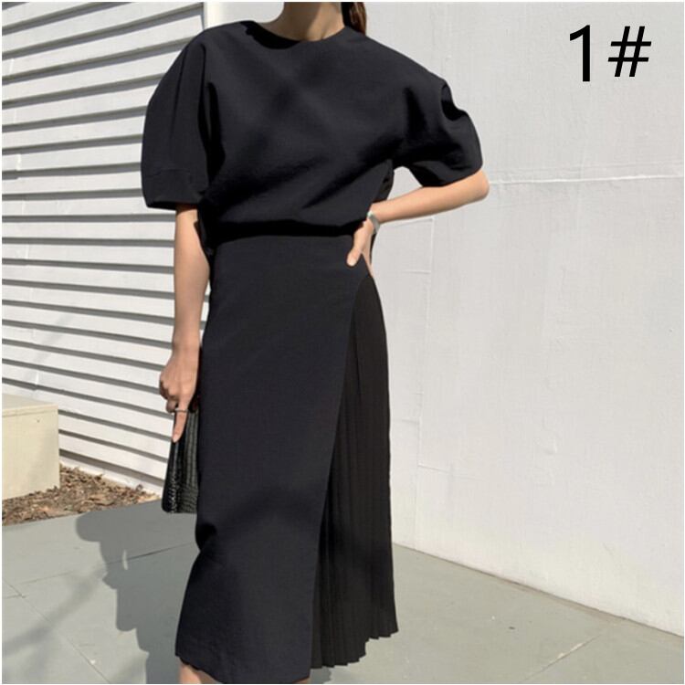 2022春夏新作 ブラウス プリーツスカート 2点セットアップ パフスリーブ 韓国風 レディース スタイリッシュ
